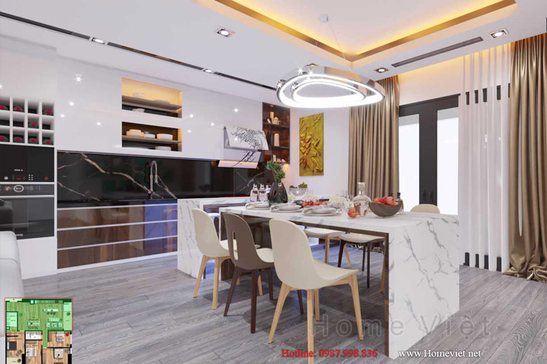nên gia chủ đã lắp đặt tủ âm tường làm tăng diện tích lưu trữ đồ. Có thể thấy, màu trắng là